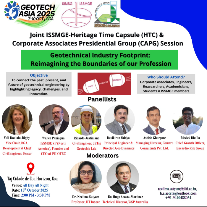 October 07-10-2025, at the Taj Cidade De Goa Horizon, Goa. This event is hosted by The International Society for Soil Mechanics and Geotechnical Engineering, the Indian Geotechnical Society, and the Indian Institute of Technology Bombay.