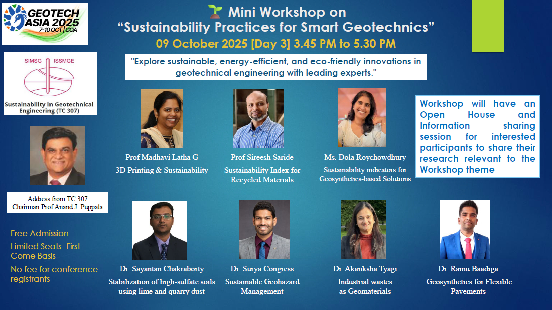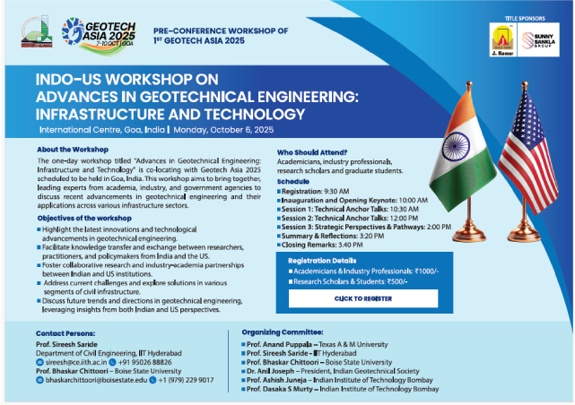 October 07-10-2025, at the Taj Cidade De Goa Horizon, Goa. This event is hosted by The International Society for Soil Mechanics and Geotechnical Engineering, the Indian Geotechnical Society, and the Indian Institute of Technology Bombay.