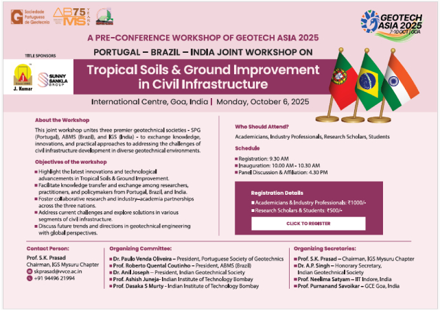 It is dedicated to advancing geotechnical engineering in India through research, education and professional development. It has a diverse membership base, comprising engineers, academicians, researchers and students. IGS provides a collaborative platform for knowledge exchange and innovation. It promotes dialogue and information dissemination on soil mechanics and foundation engineering through various channels such as conferences, seminars and publications.